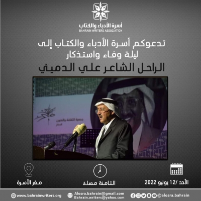 أقامت أسرة الأدباء والكتاب ليلة وفاء واستذكار للراحل الشاعر علي الدميني مساء الأحد 12يونيو 2022
