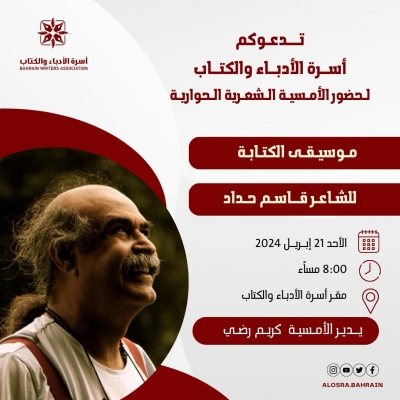 أمسية موسيقى الكتابة ل: قاسم حداد.